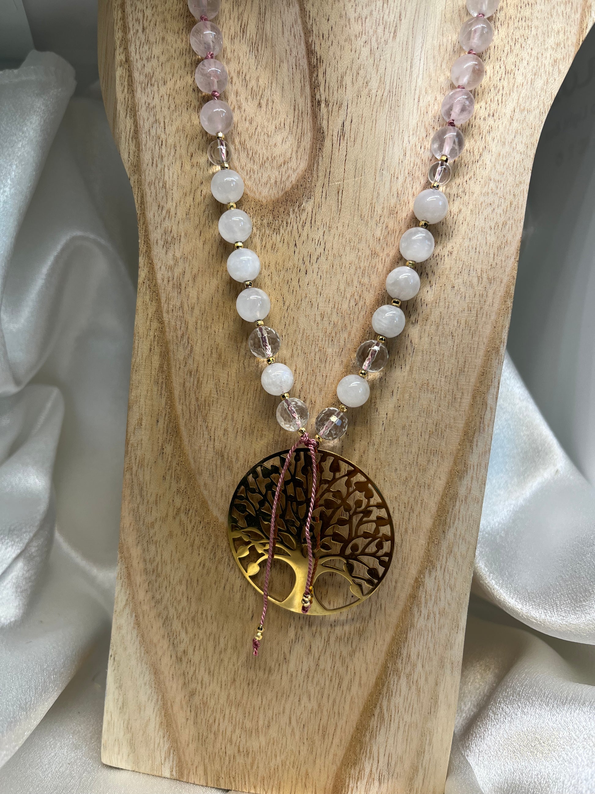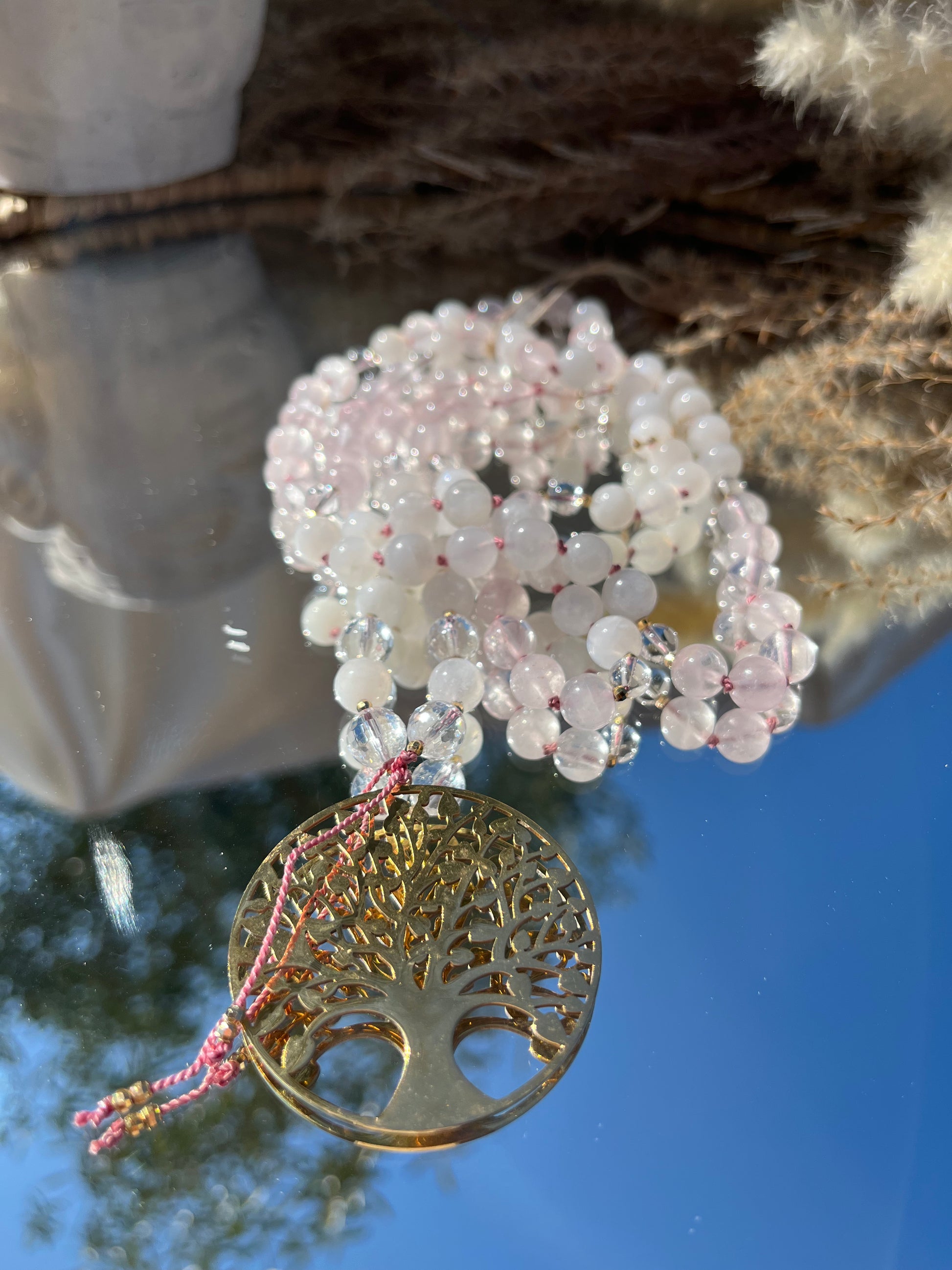Le mala est sublimé par un pendentif Arbre de Vie doré, puissant symbole d’ancrage, de croissance et de connexion entre la Terre et le Ciel.