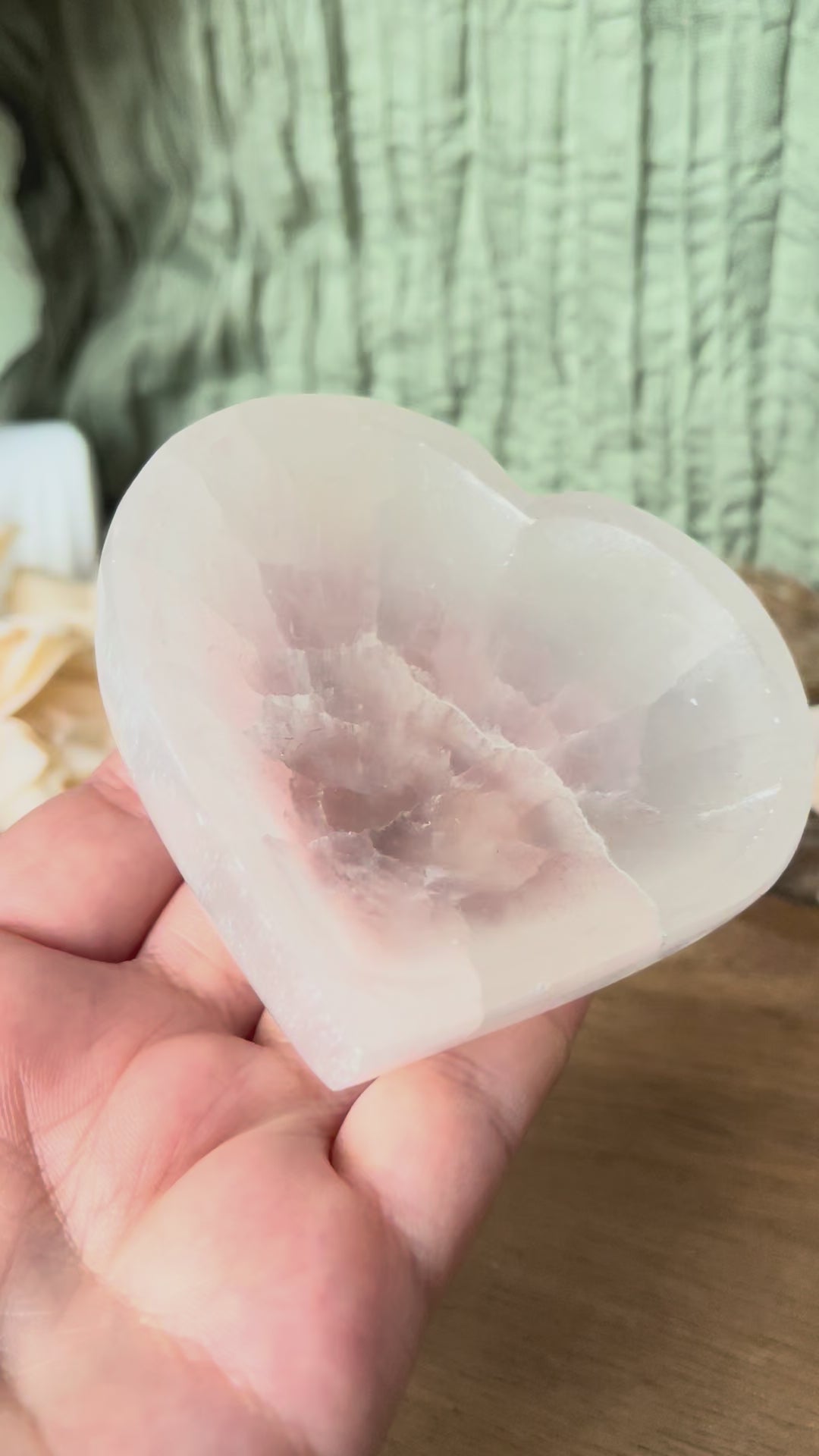 Taillé en forme de coeur, ce bol en sélénite est un véritable écrin de lumière. La sélénite - pierre sacrée de clarté et de paix - est reconnue pour sa capacité naturelle à purifier, recharger et harmoniser les minéraux ainsi que les objets énergétiques. Déposé dans ton espace sacré, il devient un point d'ancrage, un lieu où la lumière revient toujours.