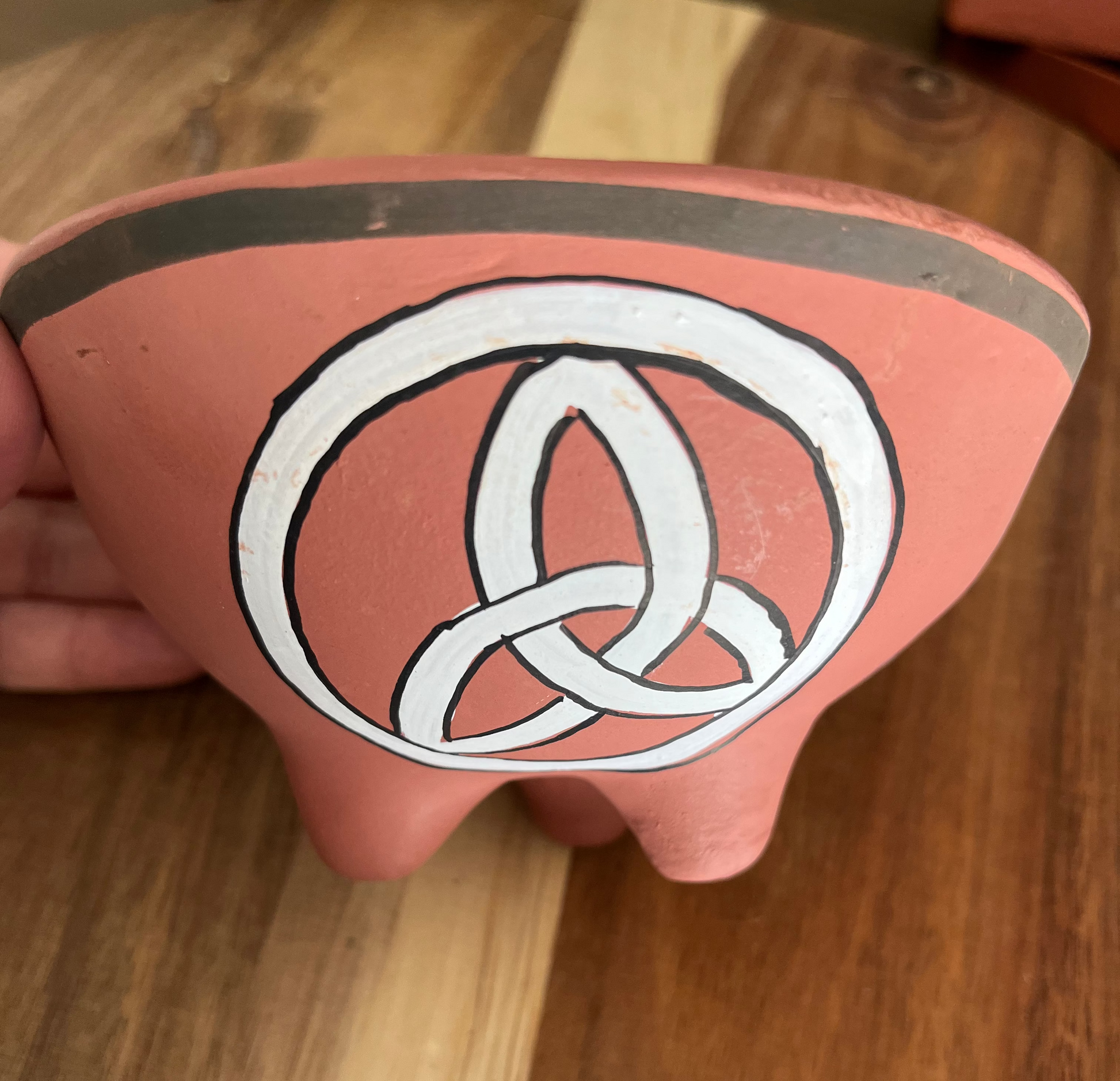 Bon en argile fabriqué artisanalement, ornée du symbole sacré de la triquetra.