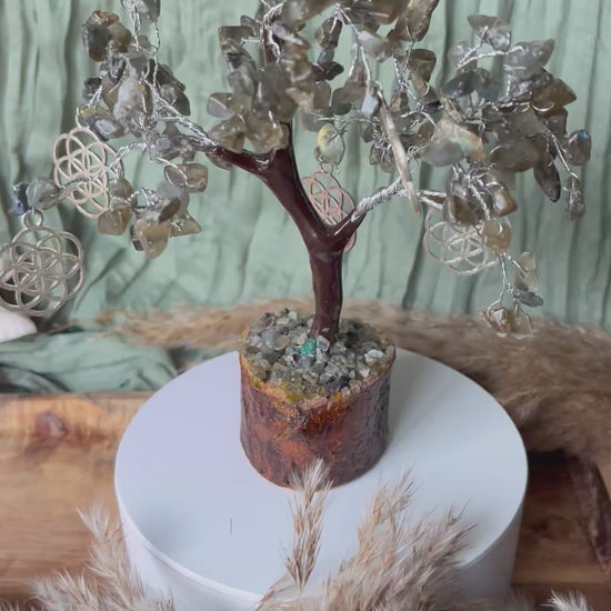 Arbre du Bonheur - PROTECTION - INTUITION - ÉLÉVATION INTÉRIEURE - Labradorite & Grains de vie