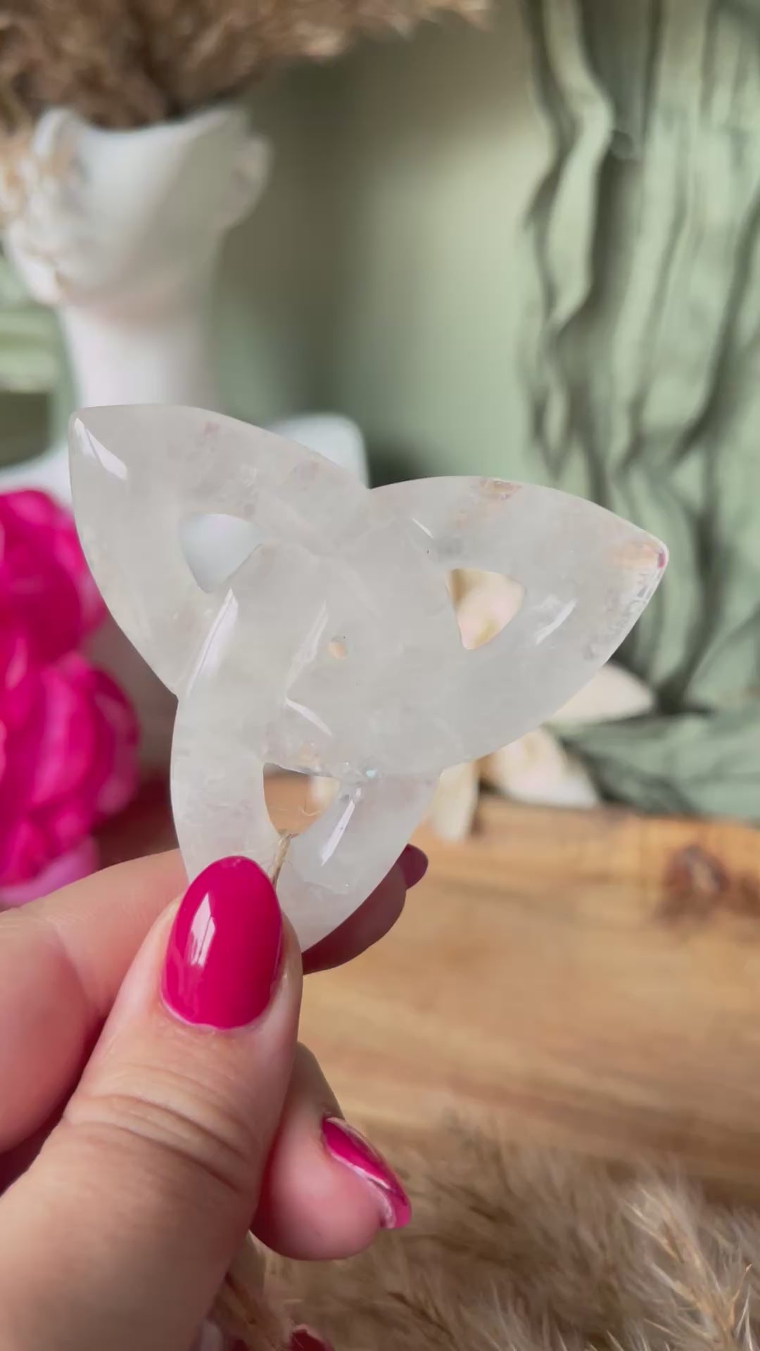 ✨ Triquetra en pierres naturelles — Labradorite • Quartz Rose • Cristal de Roche (60 mm, qualité A)