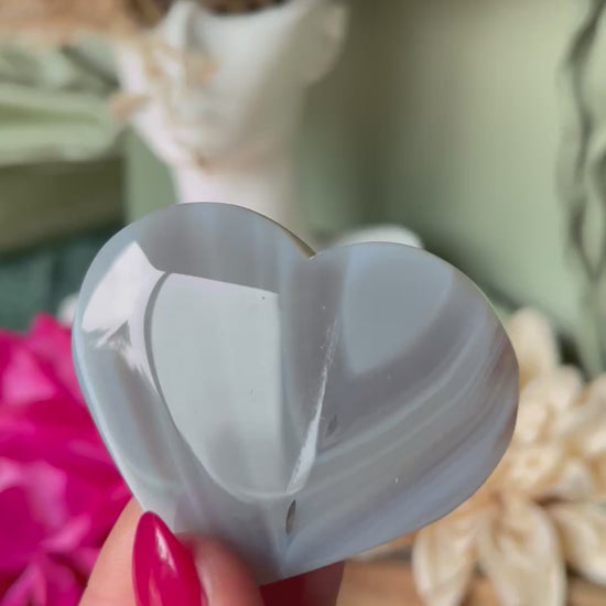 Sculpté en forme de cœur, ce galet en Agate grise du Botswana diffuse une énergie profondément apaisante. Pierre d’équilibre émotionnel, elle aide à calmer l’esprit, adoucir les pensées et retrouver une stabilité intérieure. Ses nuances grises et rosées, uniques à chaque pièce, en font un compagnon tendre pour les moments de recentrage ou de méditation.