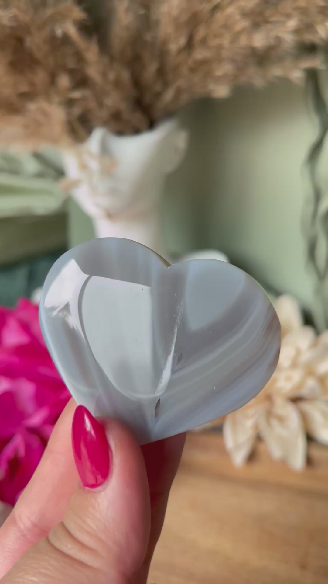 Sculpté en forme de cœur, ce galet en Agate grise du Botswana diffuse une énergie profondément apaisante. Pierre d’équilibre émotionnel, elle aide à calmer l’esprit, adoucir les pensées et retrouver une stabilité intérieure. Ses nuances grises et rosées, uniques à chaque pièce, en font un compagnon tendre pour les moments de recentrage ou de méditation.