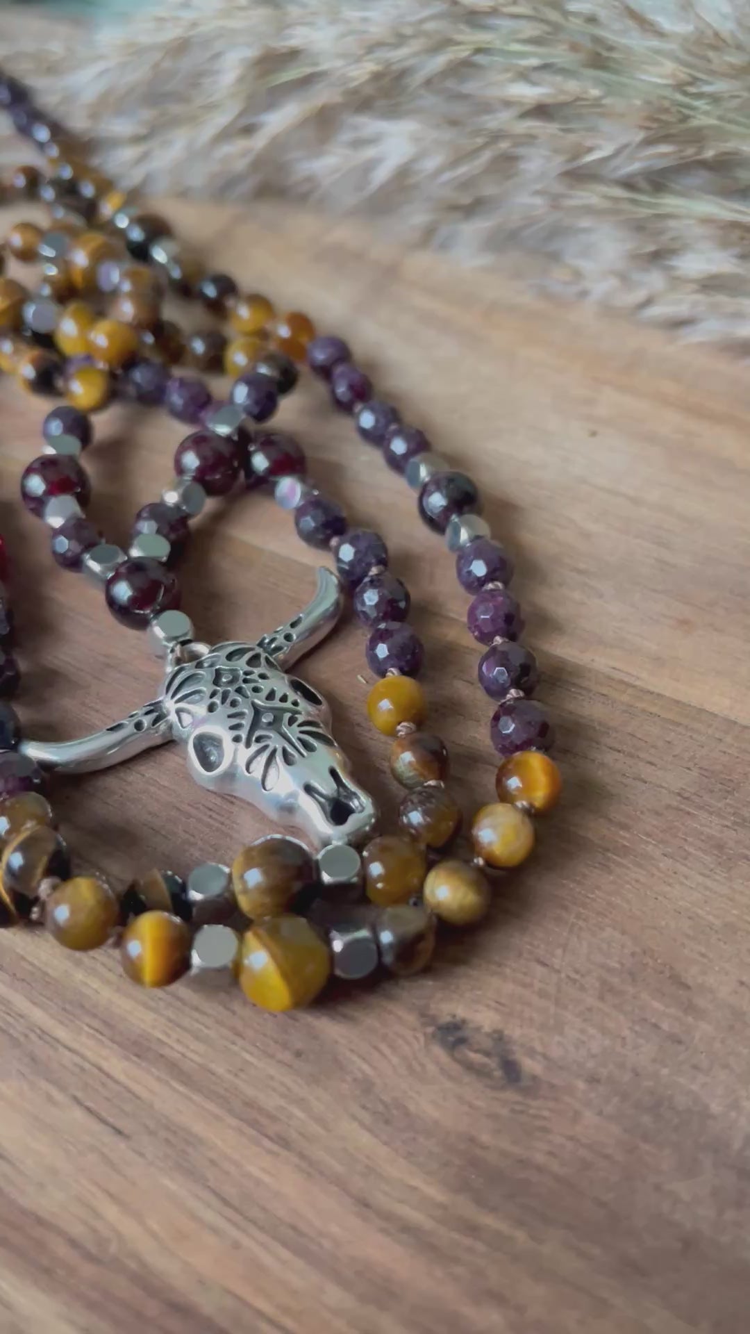 • Pierres naturelles : grenat, œil de tigre, cristal de roche