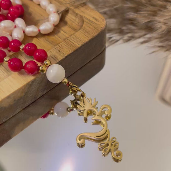 Mala « Écume Rouge » - SENSUALITÉ - VITALITÉ - ÉLAN DU COEUR - Bambou de mer- perles d’eau douce