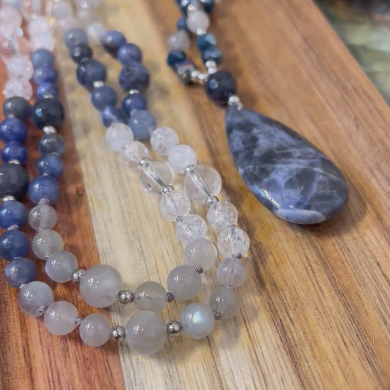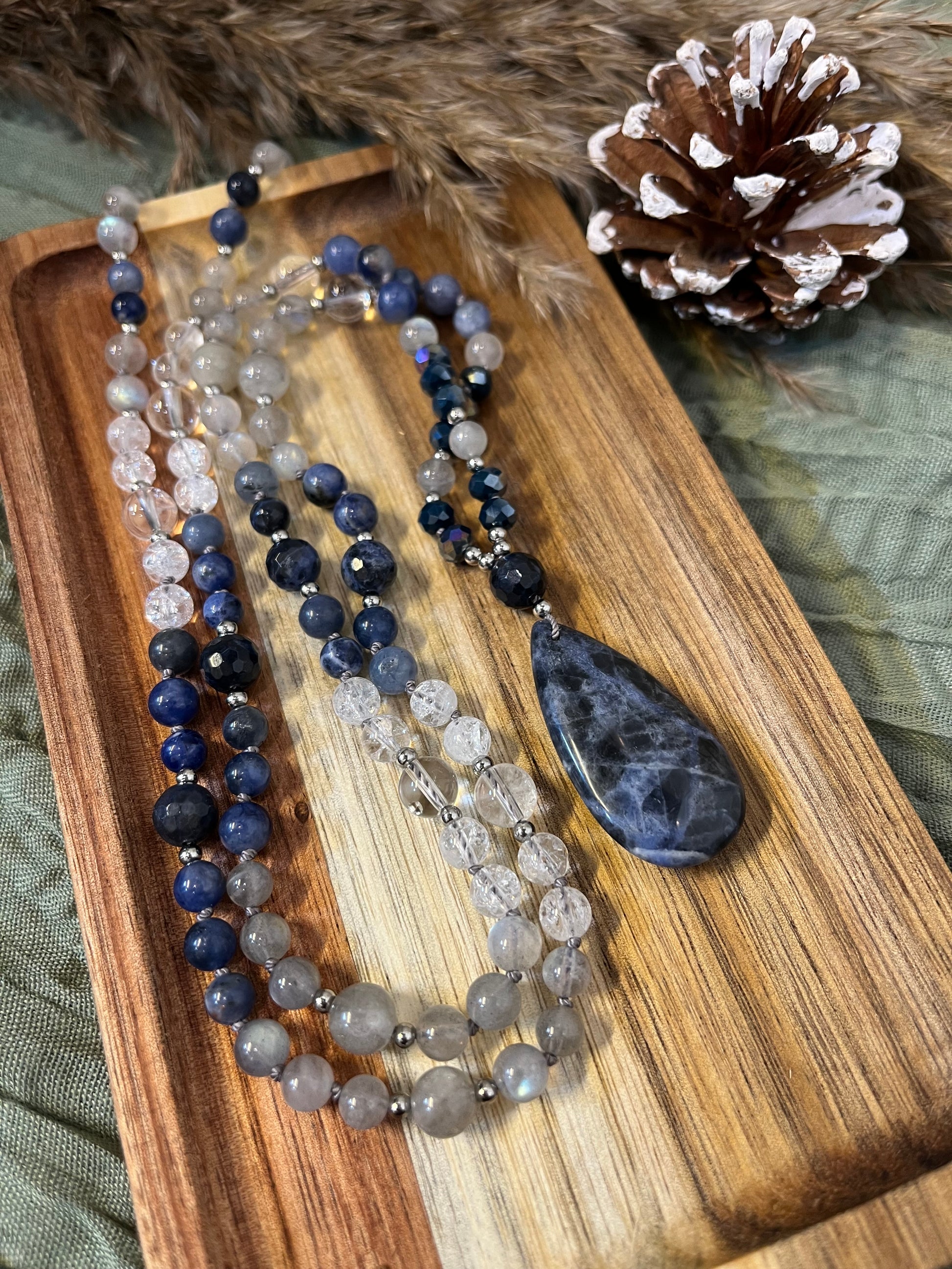 Mala « Gardien Bleu » - GUIDANCE - PROTECTION - CLARTÉ - Sodalite - Labradorite - Cristal de roche