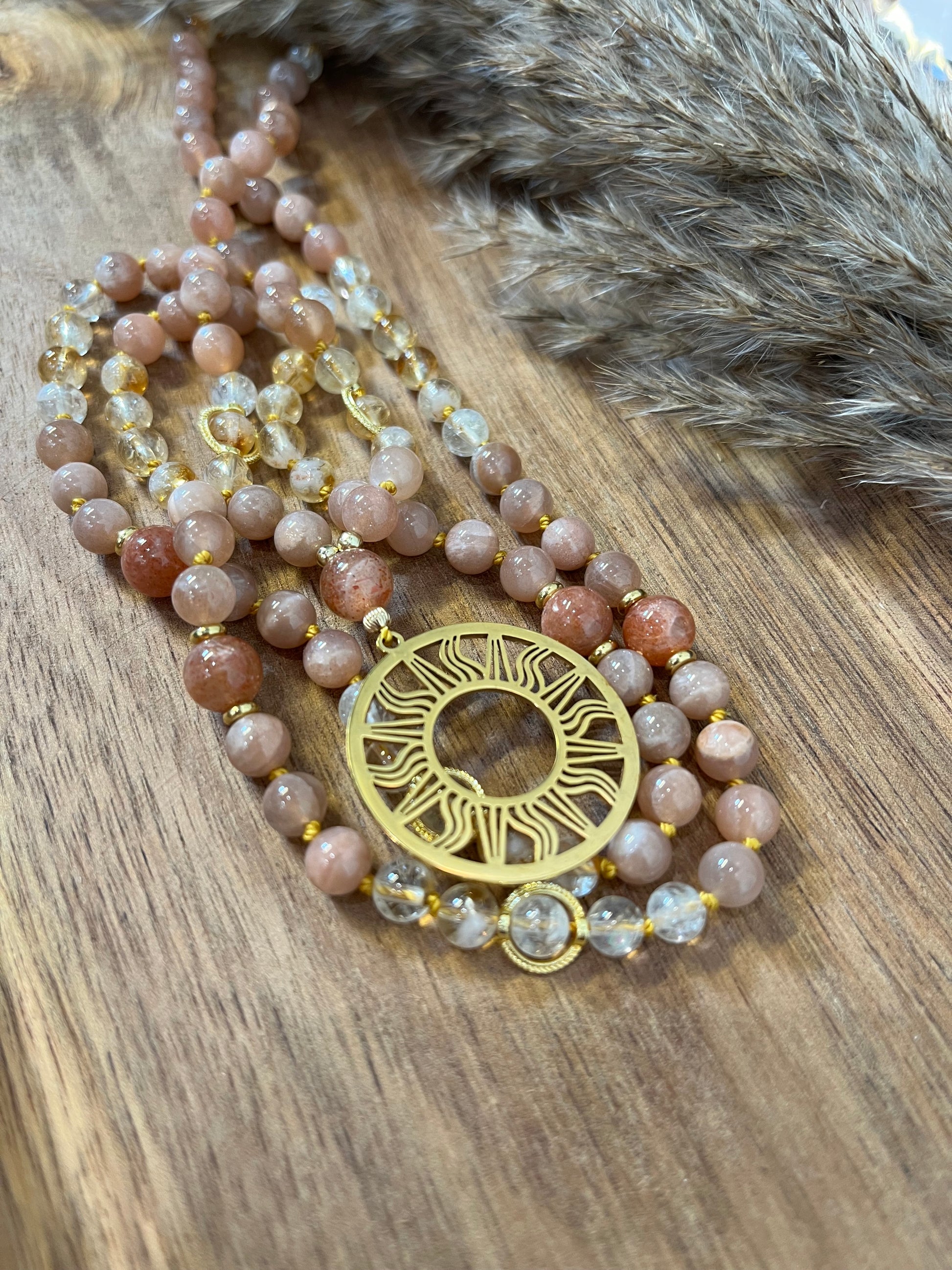 • Pierres naturelles : citrine, pierre de soleil, cristal de roche