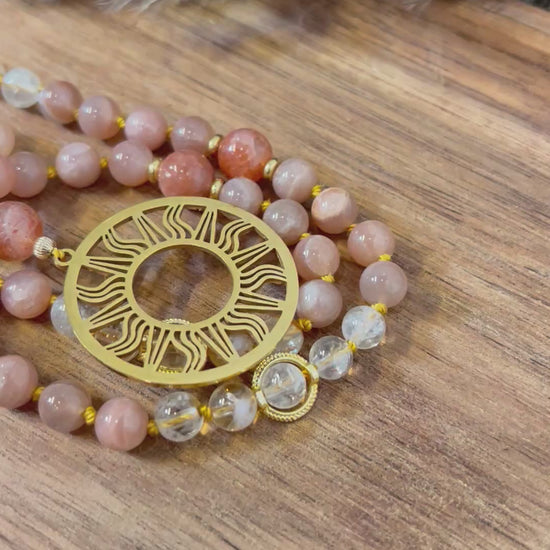 Porté par l’éclat du soleil intérieur, le mala Lumière Dorée est un talisman d’optimisme, de chaleur et d’expansion.
