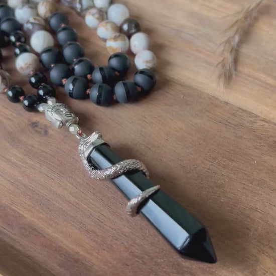 ✨ Ensemble, ces pierres créent un mala profond et introspectif, un guide pour celles et ceux qui avancent avec courage, même dans le silence de l’ombre.