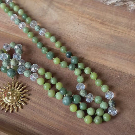 Mala « Souffle de Gaïa » - HARMONIE - RENOUVEAU - ANCRAGE - Jade verte - Agate mousse - Serpentine