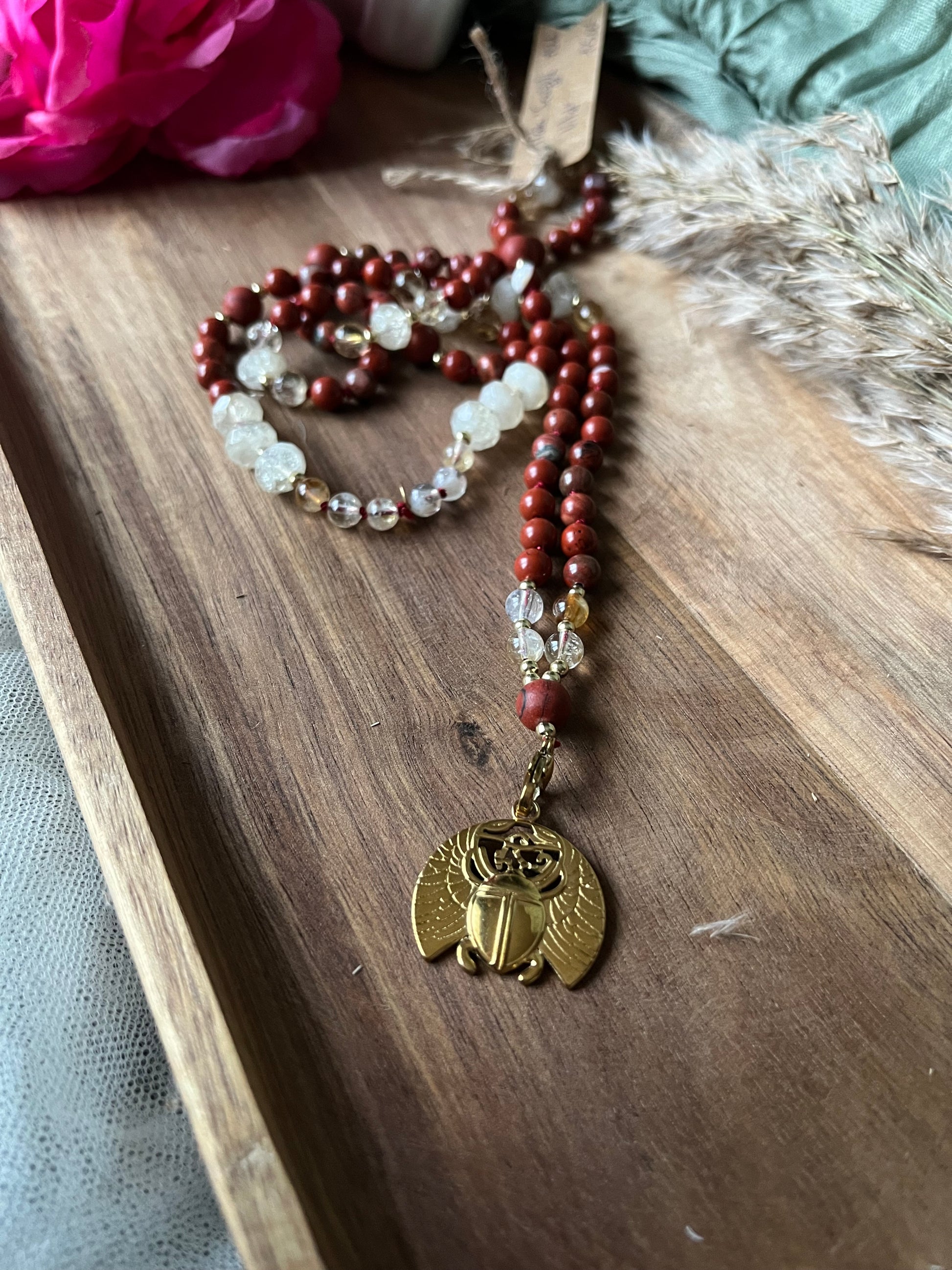 Mala « Souffle Vital » - ÉNERGIE - ANCRAGE - ÉLAN - Jaspe rouge - Citrine