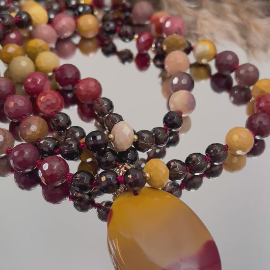 Mala « Terre Brune » - SAGESSE INTÉRIEURE - STABILITÉ - ANCRAGE - Mookaite - Quartz fumé