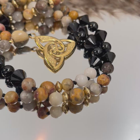 Mala « Terre d’Ombre » - PROTECTION - ANCRAGE - TRANSFORMATION - Agate crazy lace - Tourmaline
