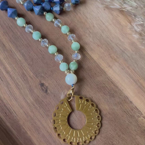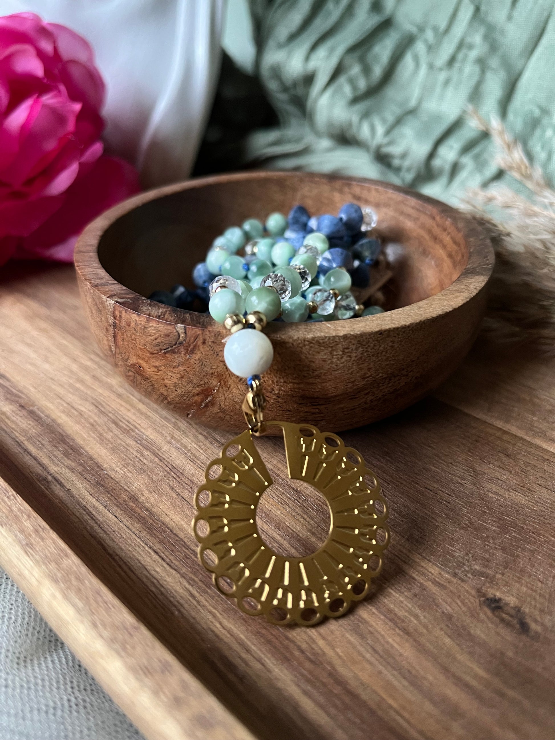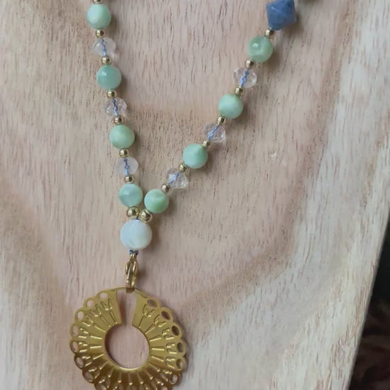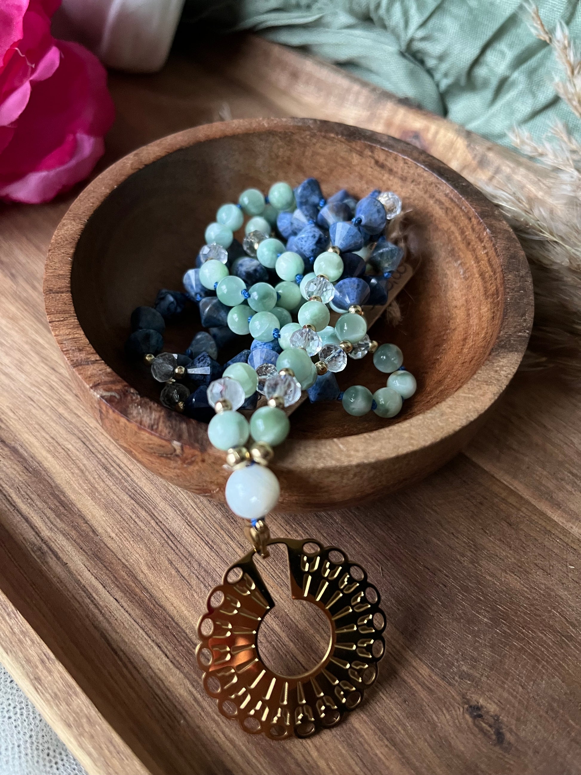 Mala « Voile des cieux » - SAGESSE - CONNEXION - ÉLÉVATION - Angélite - Dumortierite - Cristal de roche