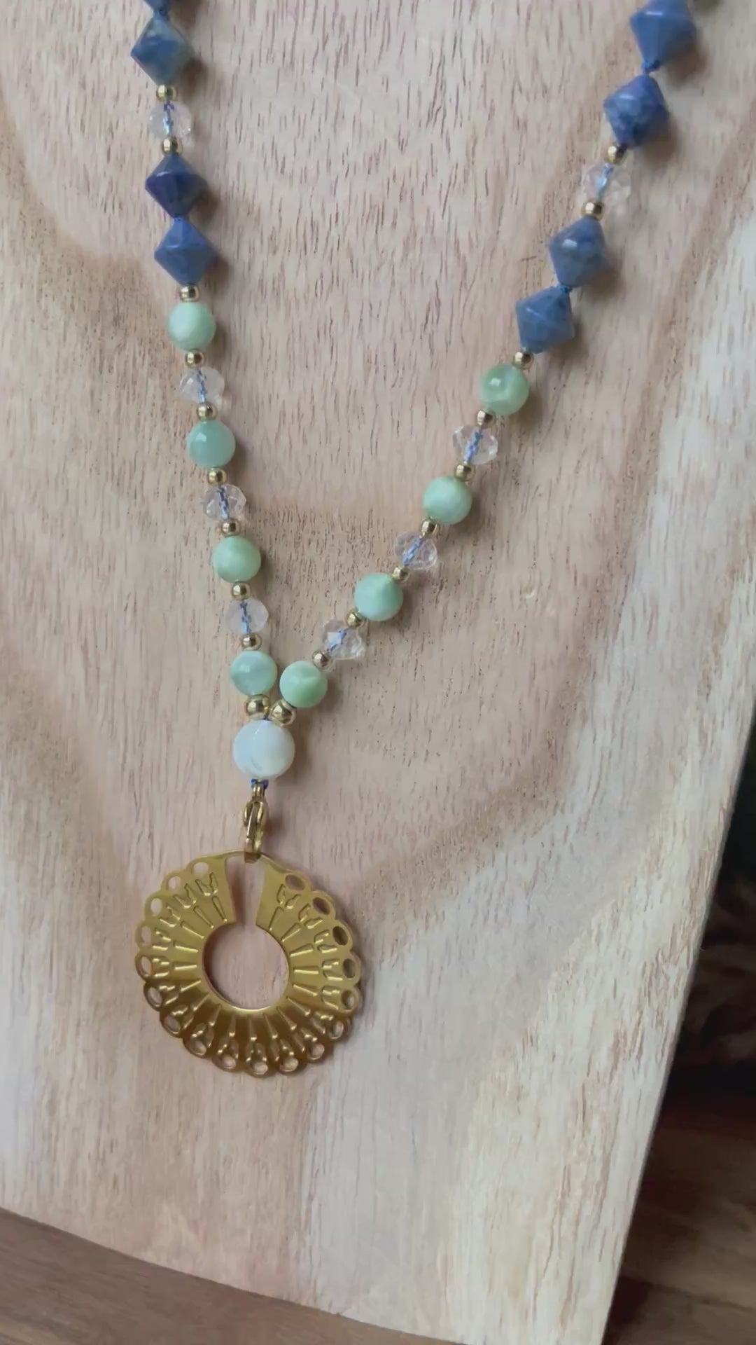 Mala « Voile des cieux » - SAGESSE - CONNEXION - ÉLÉVATION - Angélite - Dumortierite - Cristal de roche