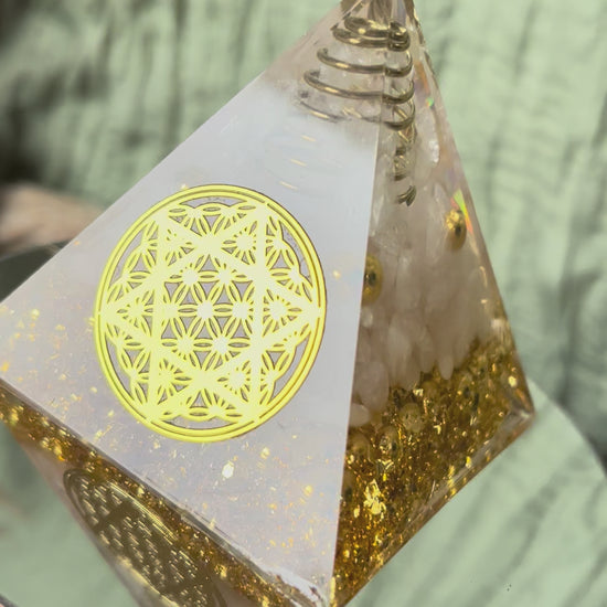 Cette orgonite est un talisman de tendresse, un noyau de lumière douce qui apaise, rééquilibre et élève les espaces comme les cœurs.