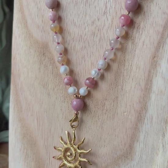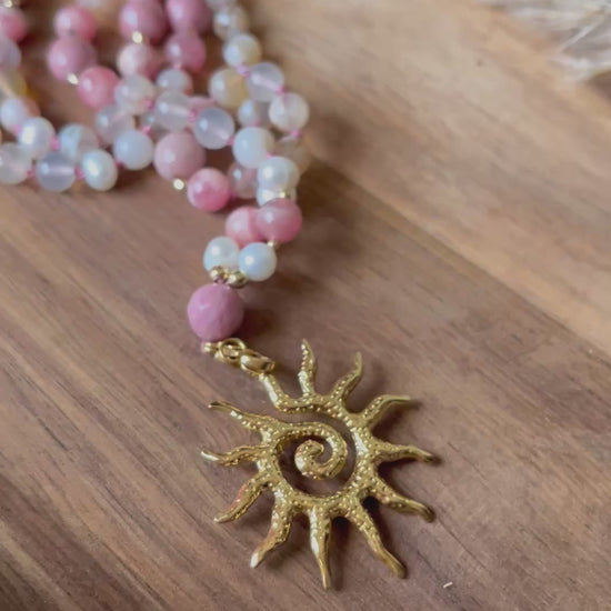 Mala « Souffle de Cerisier » AMOUR - GUÉRISON- DOUCEUR - Perles d’eau douce - Agate fleur de cerisier - Rhodochrosite